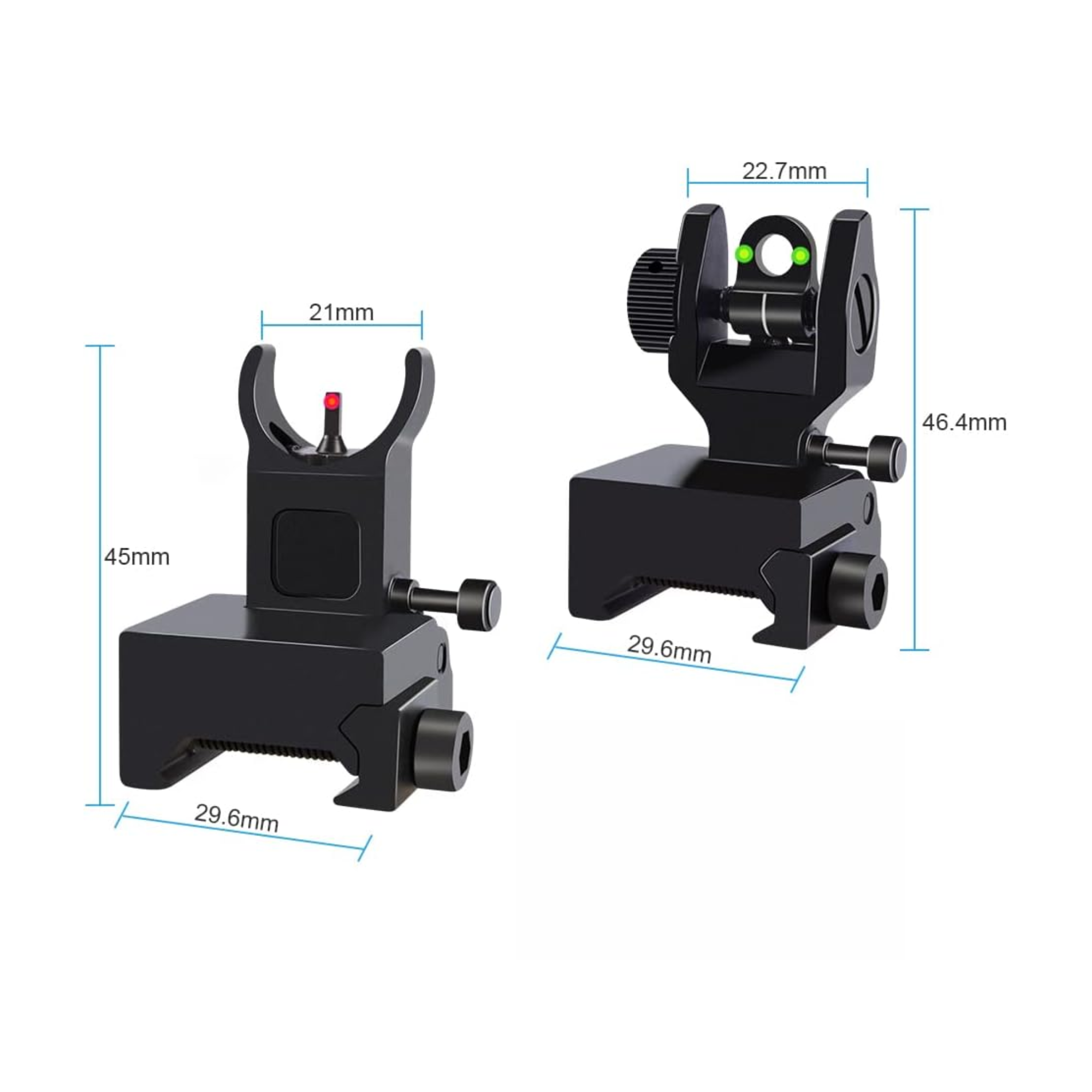Garanta que sua arma esteja sempre pronta com o conjunto de Miras de Backup Rebatíveis (Flip-Up). Projetadas para montagem em Trilhos Picatinny/Weaver (20mm), estas miras são a solução ideal para transição rápida ou como backup de segurança para sua ótica principal. A inclusão da Fibra Óptica nas cores Vermelha e Verde maximiza a visibilidade e a velocidade de aquisição do alvo em diversas condições de luz.
