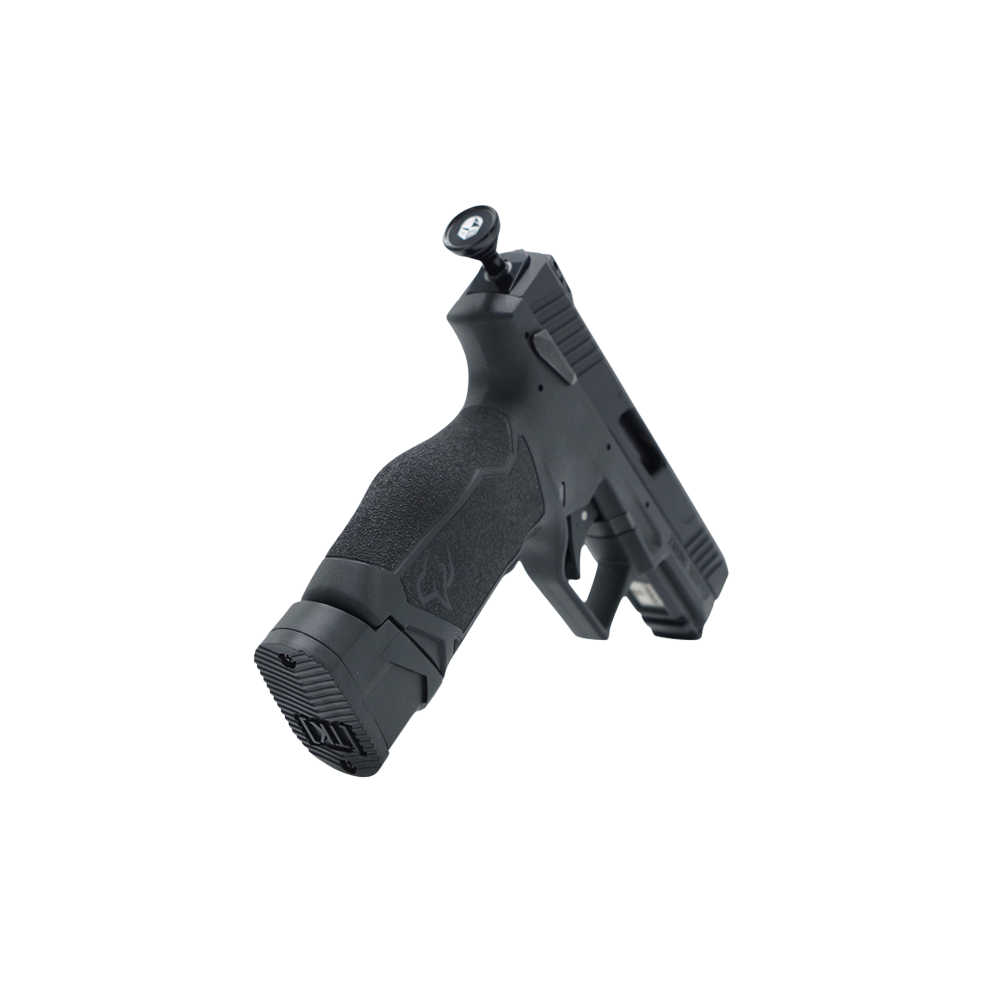 ✔️ Manuseio Aprimorado: Oferece uma área maior na base para melhor pegada e manuseio, ideal para troca rápida de carregadores ("bumping").