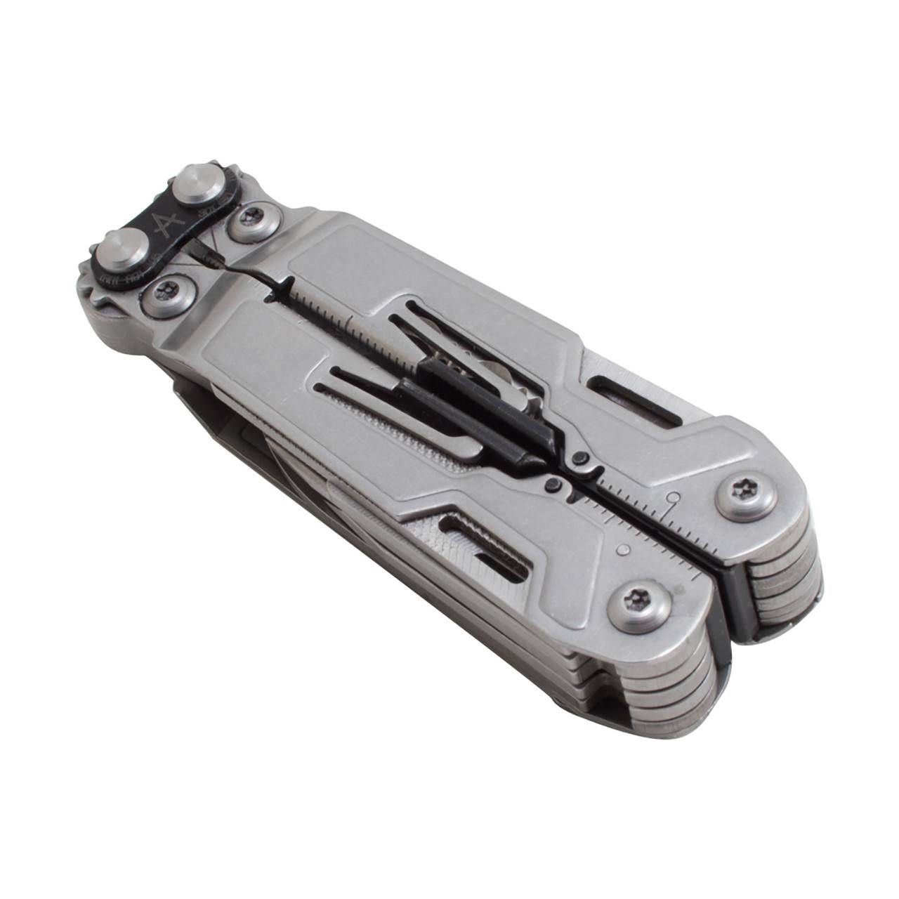 * 18 Funções: Alicate de ponta fina, Alicate comum, Cortador de arame duro, Cortador de arame macio, Prensa de terminais, Lâmina lisa, Lâmina serrilhada, Tesoura, Lima de 3 faces, Chave de fenda pequena, Chave Phillips #1, Abridor de latas, Abridor de garrafas, Régua (polegadas/mm), Furador/Escariador, Cortador de linha/corda, Driver de bits magnético (1/4") e Transportador de bits de joalheiro.